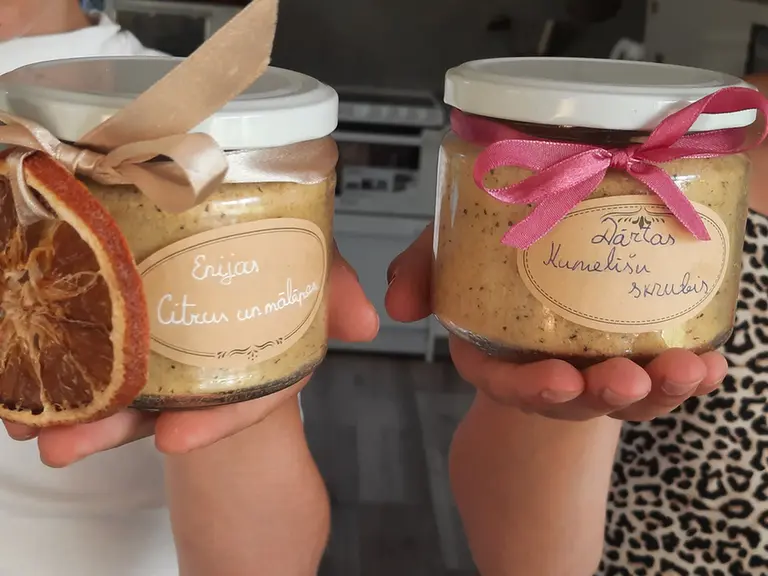 Brīnišķīgi kopā pavadot laiku ar ģimeni vai draugiem, no dabīgām izejvielām izgatavosit skrubi, ko varēsit lietot pirtī vai dušā. Vai arī skaisti noformētu uzdāvināt draugam.